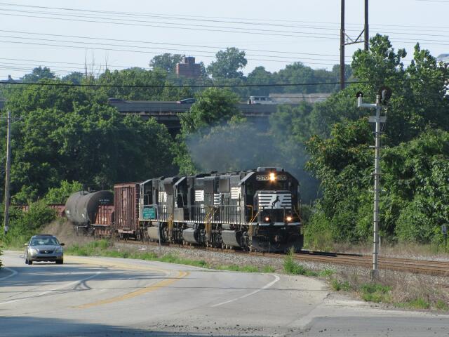 | NS Catfish, er, ah, C40-9W 9608 pulls NS 39G through Bridgeport on the Harrisburg Line. |