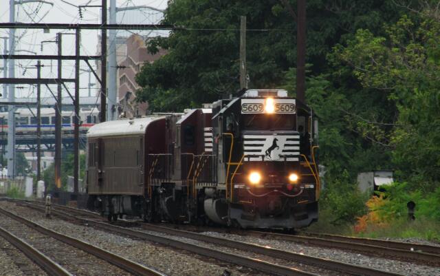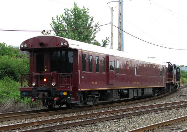 | and on the hind end research car NS 33 (built by Pullman-Standard for Union Pacific as UP 5441, and later purchased by the Alaska Railroad and retired before NS got their hands on it). |