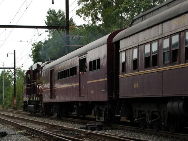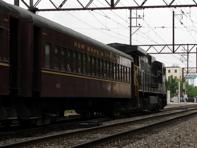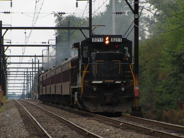 | Not far behind was the deadhead move of the Silverliner V's that were on display. In a surprise move, SD40-2W 5342 was left behind, pictured here about to be picked up by C39-8 8212 and moved over to Track 1 where it would hang out for a day before returning to Warminster Monday night. |