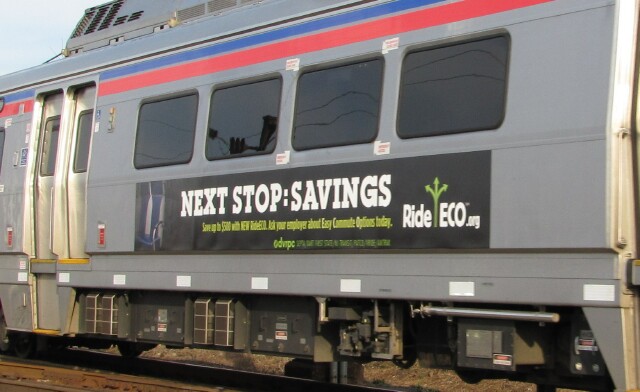 | A smaller ad from the Delaware Valley Regional Planning Commission promoting mass transit can be found on several other cars such as SPAX 722. |
