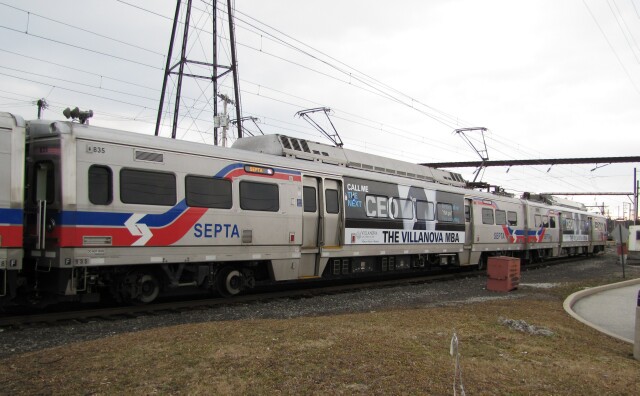 | Have yet to confirm, but assuming that the small wrap on SPAX 856 and nothing on this side of the other half of its married pair means that the ad is on the other side of the trailing unit, similar in format to the DVRPC ads on married pairs. |