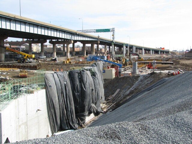 | The northside retaining walls have been poured but there is still a lot of work before the north and south tracks can be connected. |