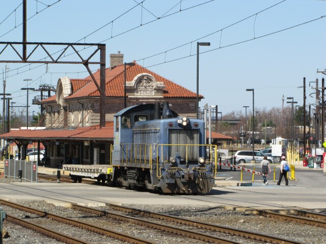 | Due to the inaccesibility of the site, SEPTA 52 brought up a flat car on which a crane lowered the ancient transformer, then the locomotive would shove the load to the station where another crane would transfer it to a waiting flat bed tractor trailer for its final journey to the scrap yard. |
