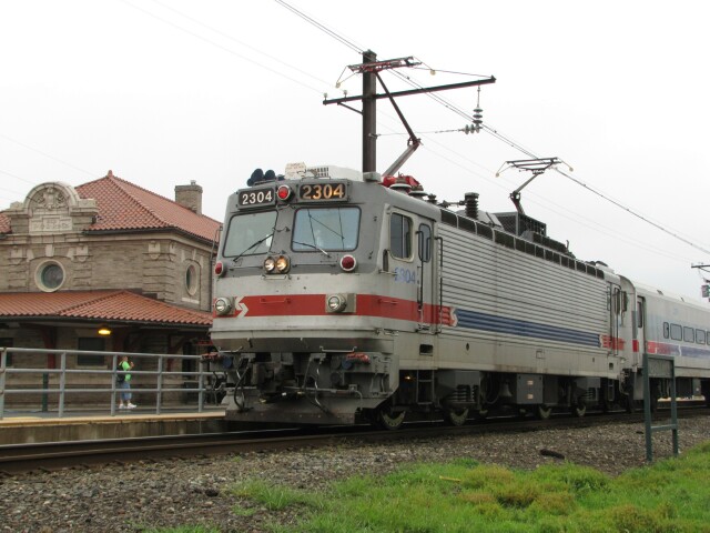 | SEPTA's AEM-7's, also the last of their kind still operating, are the usual power for the push-pull sets, but even they can throw you a curveball, like the mismatched numberboards on SPAX 2304. July 14 2016 |