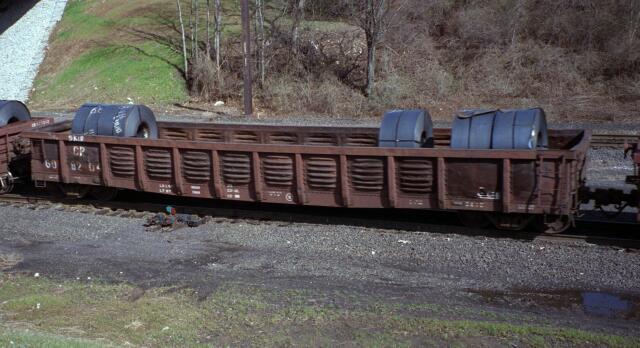 | Former Pennsylvania Railroad car in coil steel service on Conrail train PIMO. |