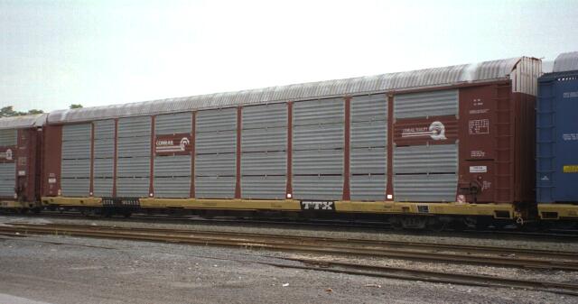 | TTX flat car ETTX 903155 with Conrail autorack CR 3890 July 1996 |