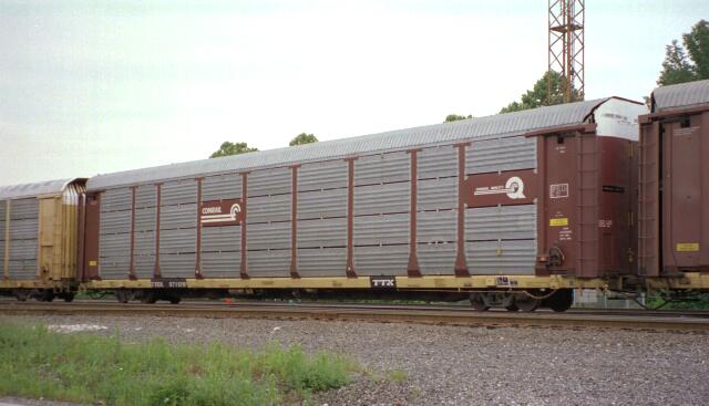 | TTX flat car TTGX 971126 with Conrail autorack July 1996 |