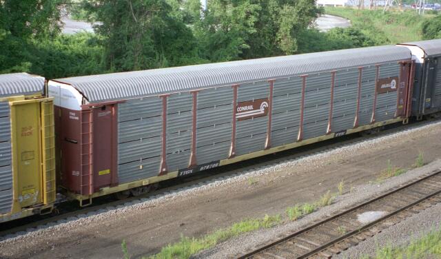 | TTX flat car TTGX 978706 with Conrail autorack July 1996 |