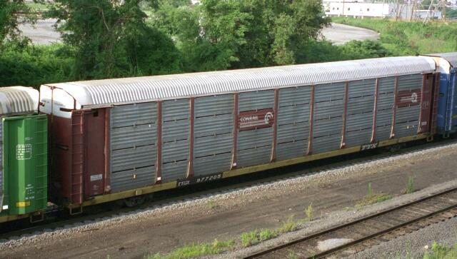 | TTX flat car TTGX 977205 with Conrail autorack July 1996 |