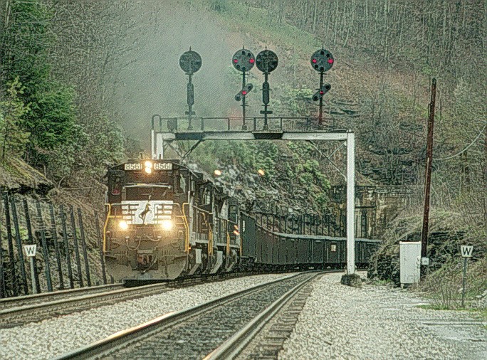 This site will serve as an introduction to two of my passions, n-scale model railroading and the Norfolk Southern railroad, and its pre-merger roads; the N&W, Southern, NKP, Wabash, Virginian and many smaller companies. Why would a guy from Montreal model this road, and more importantly, why would he model West Virginia? My love of the coal fields and the Appalachian Mountains can be blamed on my parents, many family trips to the sunny south were taken through this area. It was often little side trips to this region that interested me the most. Of course, when I was younger I remember seeing units with Clinchfield, Norfolk and Western, Chesapeake and Ohio and Southern proudly displayed on their sides. I have been a NW and Southern fan for as long as I can remember, it must be those high-nosed diesels! Modeling the Norfolk Southern's coal operations in the rugged Appalachian mountains gives me a chance to combine beautiful scenery, small towns, coal mining operations and eastern mountain railroading.
