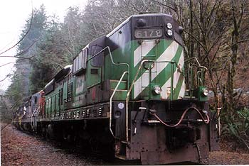 | Axles-Powered: | 6-6 | Comments: | Short hood forward. Has dynamic brakes, ditch lights. Also has a single 1200 gallon fuel tank. Aquired as part of a 10 unit lot from BNSF in Dec., 2002. 6BL air brakes. First used Feb. 20, 2003. |