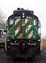 | Axles-Powered: | 6-6 | Comments: | Short hood lead. Has dynamic brakes, ditch lights on the front. 1200 gallon fuel tank. (Single fuel tank, not dual like many SD-9s.) Aquired as part of a 10 unit lot from BNSF in Dec., 2002. 6BL air brakes. Main generator problem. |