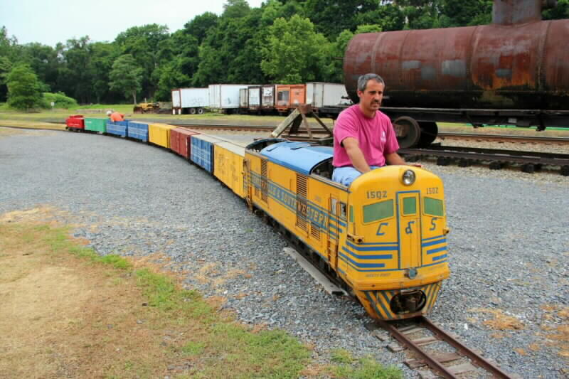 | Photo 3: On July 13, 2012, Bob Marinelli takes the Centerville & Southwestern #1502 for its first test run after more than 15 years in storage. Bob, Pat Graham and Glenn Terminelli have been working months to bring the locomotive back to life. It still needs a lot of work to bring it up to a reliable and well running engine. | ||||