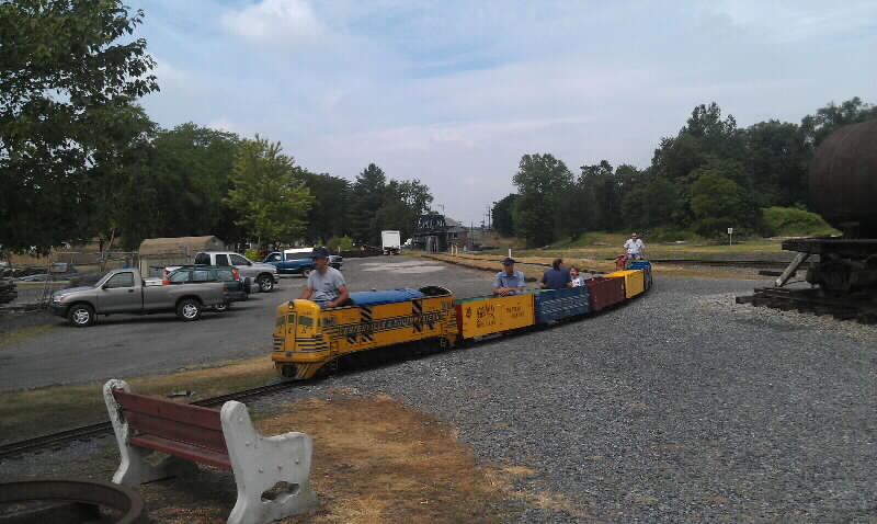 | Photo 8: On July 15, 2012, Centerville & Southwestern double-ender #1502 made its first revenue run since September 1972 when the C&S ceased operations on the Becker Dairy Farm. The engine operated on some demonstration runs when we first brought the railroad to Phillipsburg. It then went into our storage for more than 15 years. Pat Graham, Bob Marinelli & Glenn Terminelli have been working over the last several months to get the engine running. | ||||