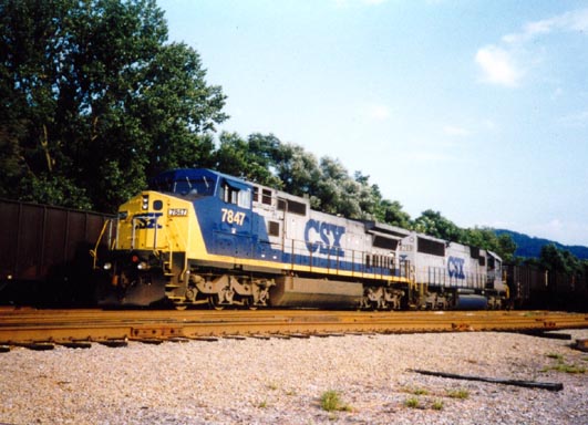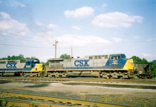 This is the CSX first re-paint; 8767, former CR 5525 and was seen in 1999, just a few days after being released from the Huntington, WV shops, approximatly 150 miles south on the Ohio River. CSXT Photo Number Eight