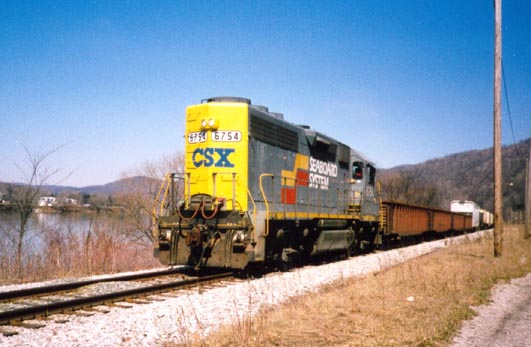 This shot was taken in April of 98 in St Marys West Virginia on the Ohio River Sub. CSXT Photo Number Thirteen
