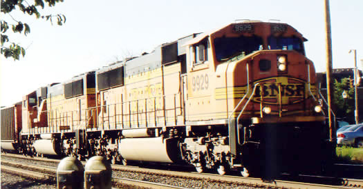 and a helper head east out of the Bensenville yard, pulling an ecclectic