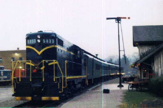 the "Geep" (C&O GP7 no. 5833) passing through the