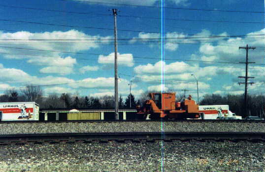 Track Analyzer (?) moves through Alliance, Ohio during the spring.