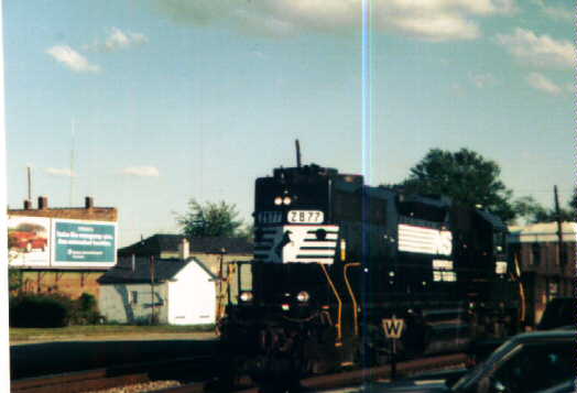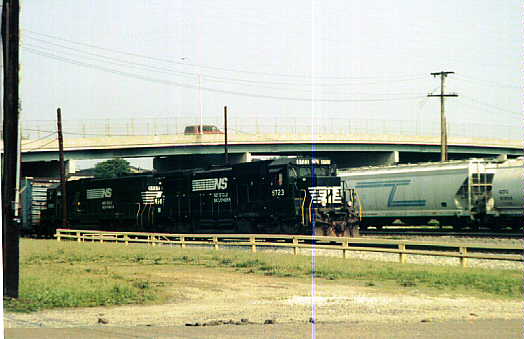 no. 8723 and a SD50 lead a freight into Portsmouth, while the