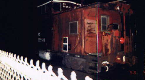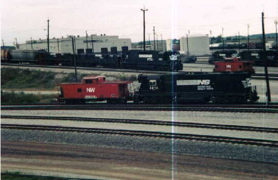 no. 2874 moves NW caboose no. 555078 through Bellevue Yard.