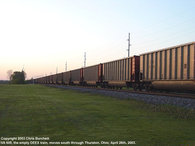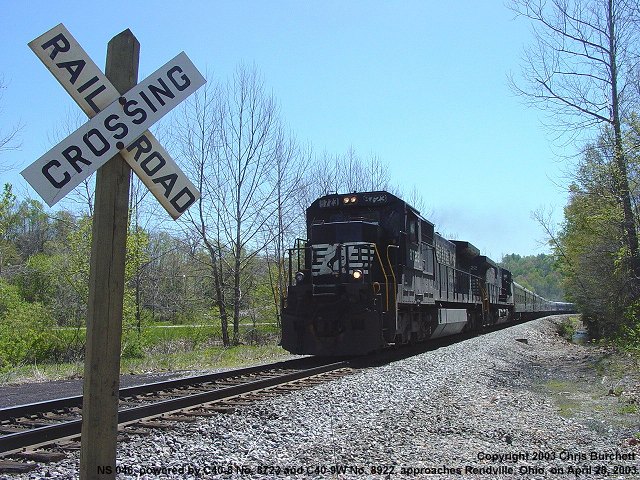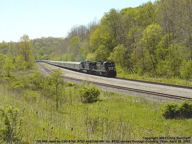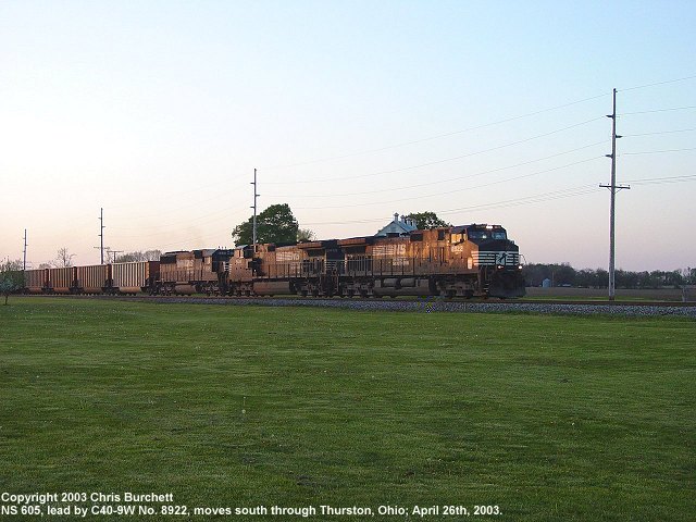 After meeting the 45N at Thurston, train 605, lead by C40-9W No. 8922, C40-9W No. 9449, and SD50 No. 6525, moves on south to the West Virginia coal fields for more coal to deliver to Detroit-Edison.