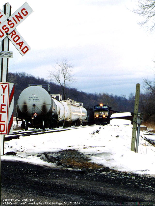 The next location was a meet with empty coal train 601 at Armitage. NS C40-9W no. 9604 was the sole locomotive in charge of the train as he waited for the 45N to clear the main.