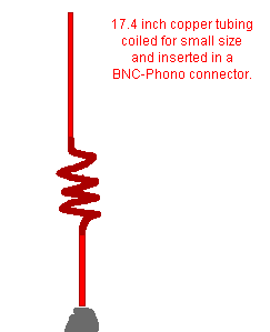copper tubing whip antenna attached to a BNC to Phono jack works best