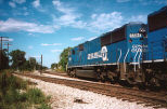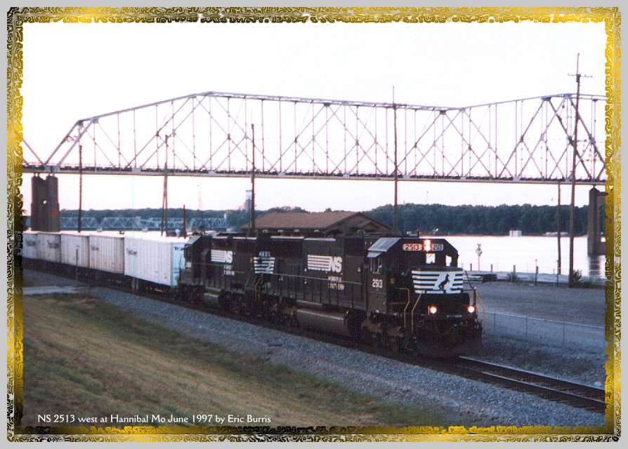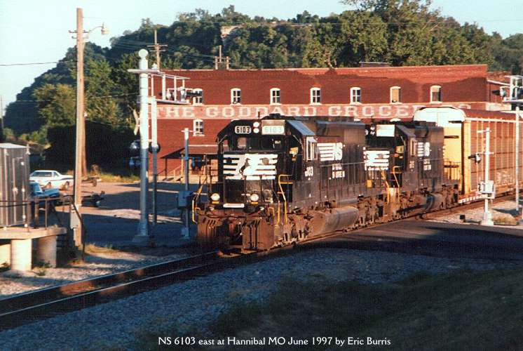 NS 6103 east and also NS 2513 west at Hannibal MO June 1997 by Eric Burris.