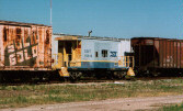 (left) CSX 2633 heads toward Baker yard after switching Terre Haute. I photograph it coming around a curve just north of the Baker siding. (right) At Baker yard a CSX bay window caboose hopes for the best. Photos by Eric Burris in July 1997.
