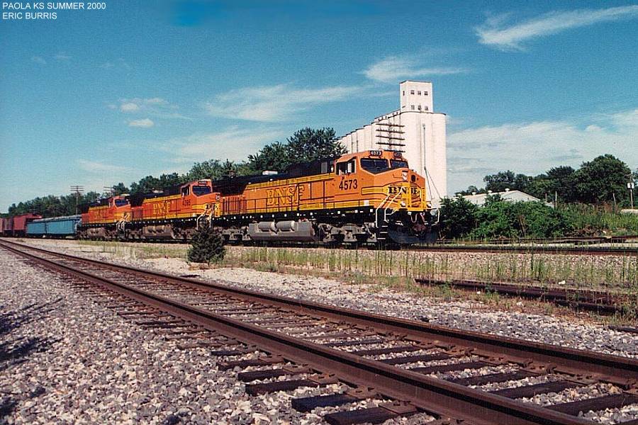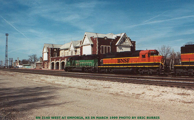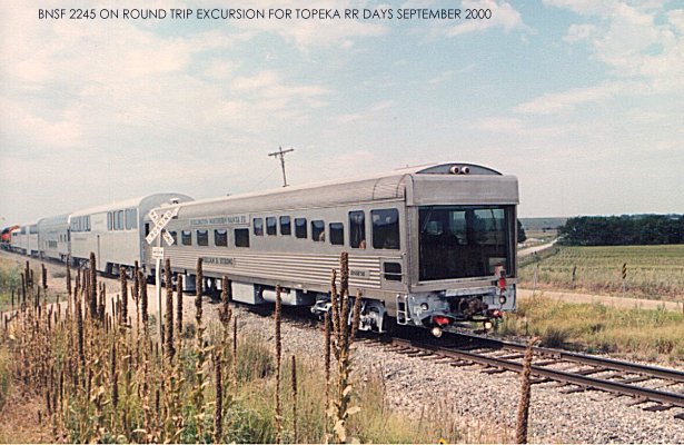The BNSF Railroad Days Excursion train is headed towards Emporia, Ks round trip to Topeka, i think this is September 2000.