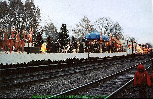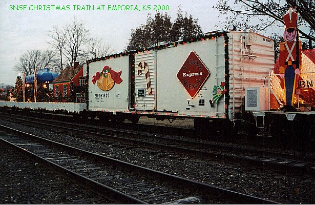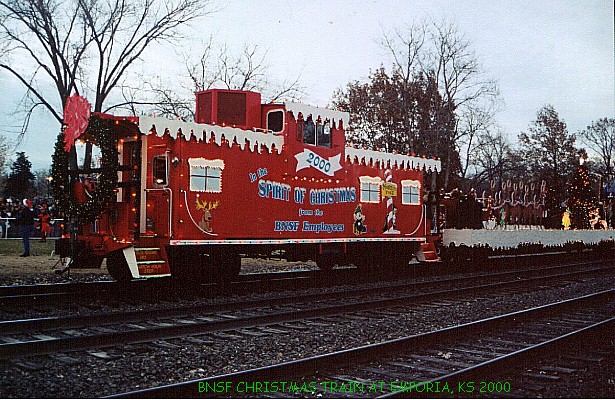 BNSF Christmas Train at Emporia, Ks putting on a spectacular show indeed, before continuing to Topeka, KS during December 2000. This is the last year it ran.