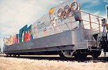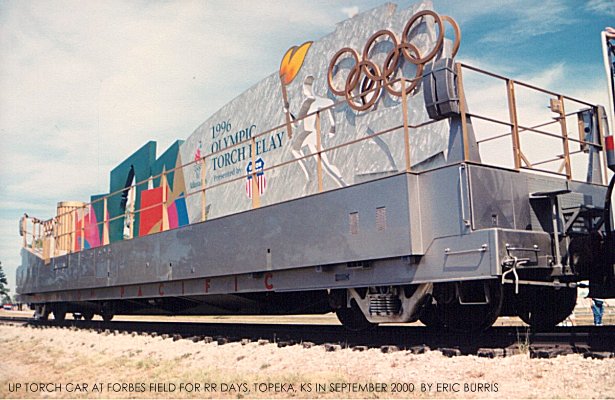 Southern Pacific 8276 is sitting at the Union Pacific yard at Topeka, KS in September 2000. The UP torch relay for the Olympics is on public display at Forbes Field, Topeka Railroad Days. I also am on the wonderful BNSF Dash9-44CW at RR Days.