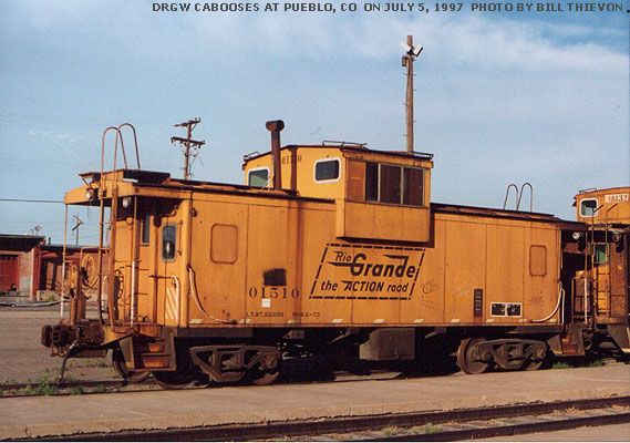 At Leoti, Ks SP 228 east passes by while Bill is headed toward Colorado.. And some Rio Grande cabooses sit at Pueblo, Colorado.