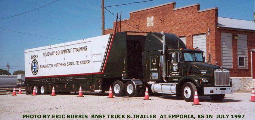 (RIGHT)The Burlington Northern Santa Fe truck and trailer sits at the Emporia Yard in July of 1997.