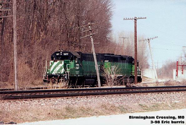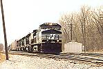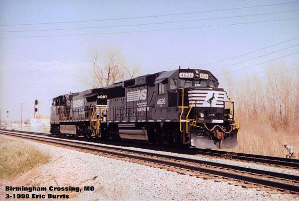 NS 9107 east passes Birmingham Crossing. BN transfer job goes up the Kearney Branchline up north. And also a NS transfer job goes into the autorack facilty.