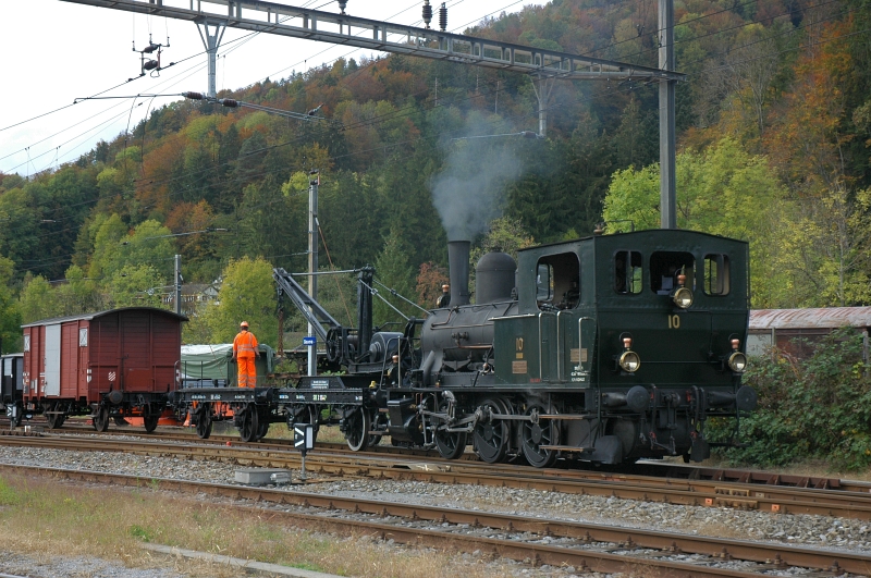 | 1792-0004-111009w | DVZO E 3/3 10 + DVZO/SBB-CFF X 99441 | Bauma 11.10.2009 | |