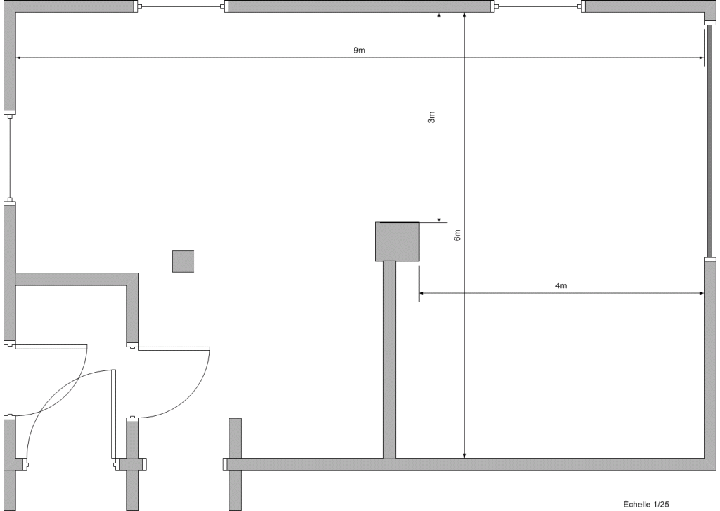 en L de dimentions généreuses (39m2, 9 x 3m, plus 4 x 3m),