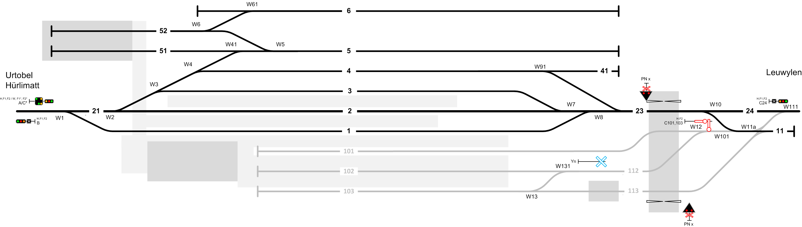 - La voie menant en réalité à Hinwil (voie 11 sur le plan) s'arrète