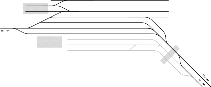 voies avant les travaux de 2012. En noir: voies électrifiées CFF. En