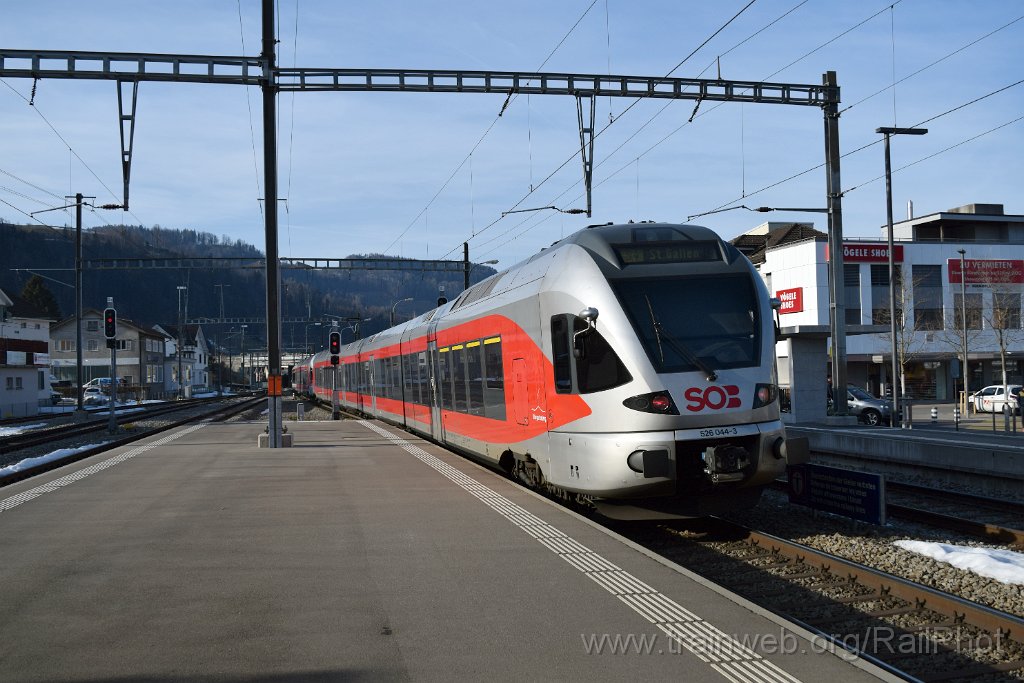SOB RABe 526.052-6 "Schnabelsberg" + RABe 526.044-3 "Morgartenberg" / Wattwil 26.2.2019 Download