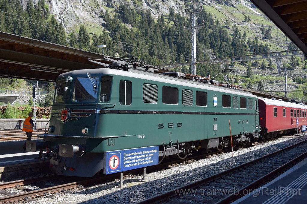 5557-0027-010619.jpg - SBB-CFF Ae 6/6 11411 "Zug" + WR 700 / Göschenen 1.6.2019