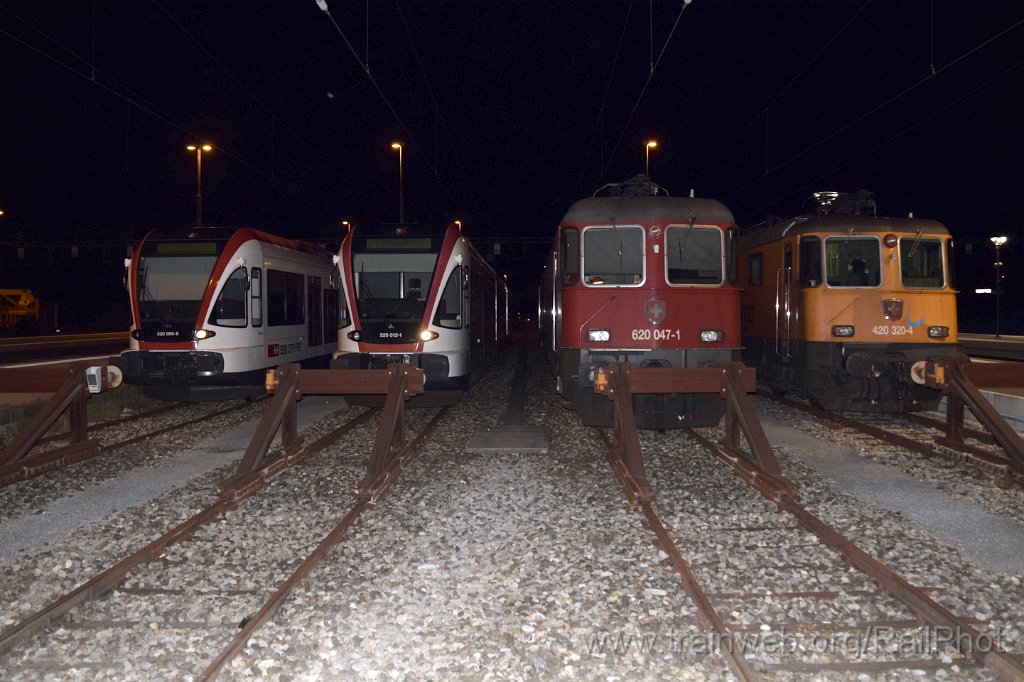 | SBB-CFF RABe 520.000-6 "Seon" + RABe 520.012-1 "Hallwil" + Re 620.047-1 "Bex" + Re 420.320-4 "InterRegio Cargo" / Bülach 2.6.2019 | |