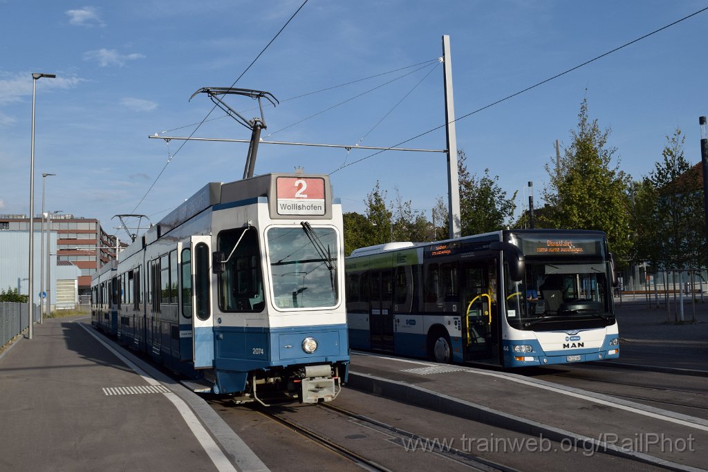 5741-0010-160919.jpg - VBZ Be 4/6" 2074 + Be 4/6' 2302 + Bus 44 / Schlieren Geissweid 16.9.2019