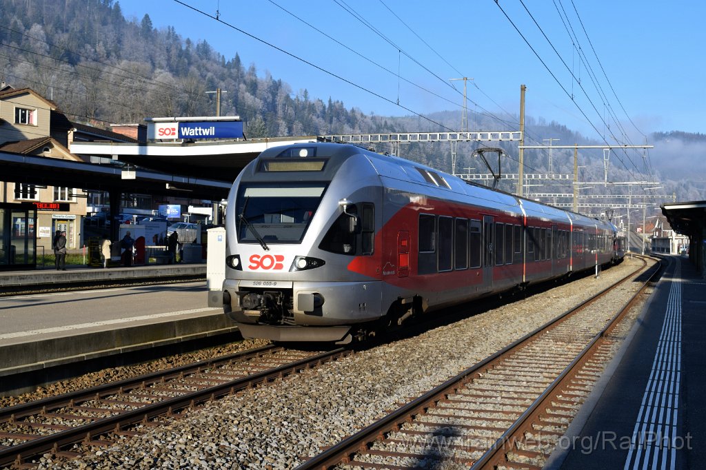 SOB RABe 526.059-1 "St.Anton" + RABe 526.055-9 "Mürtschenstock" / Wattwil 30.12.2019 Download