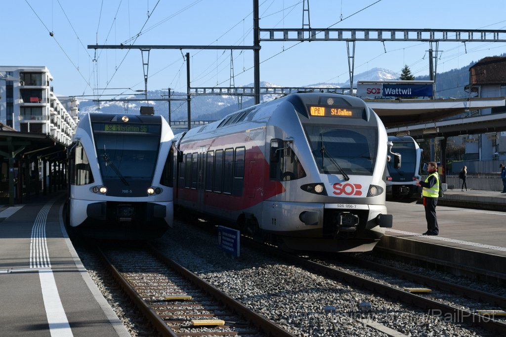 Thurbo RABe 526.788-5 "Romanshorn" + SOB RABe 526.056-7 "Pizol" / Wattwil 23.3.2020 Download
