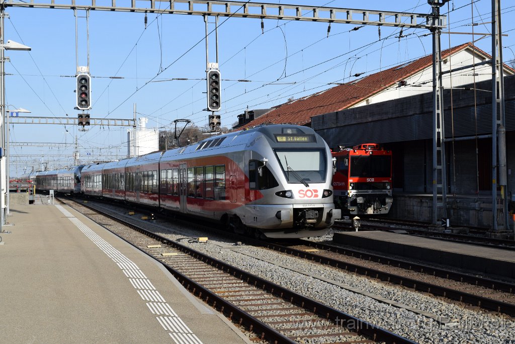 | SOB RABe 526.046-8 "Ringelspitz" + RABe 526.055-9 "Mürtschenstock" + RABe 526.041-9 "Mythen" / Herisau 19.2.2021 | |