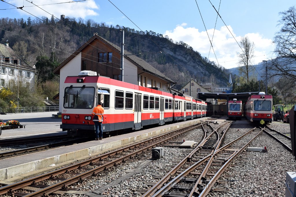 7330-0049-030421.jpg - WB Bt 117 + BDe 4/4 17 "Waldenburg" + Bt 116 + BDe 4/4 16 "Liestal" / Waldenburg 3.4.2021