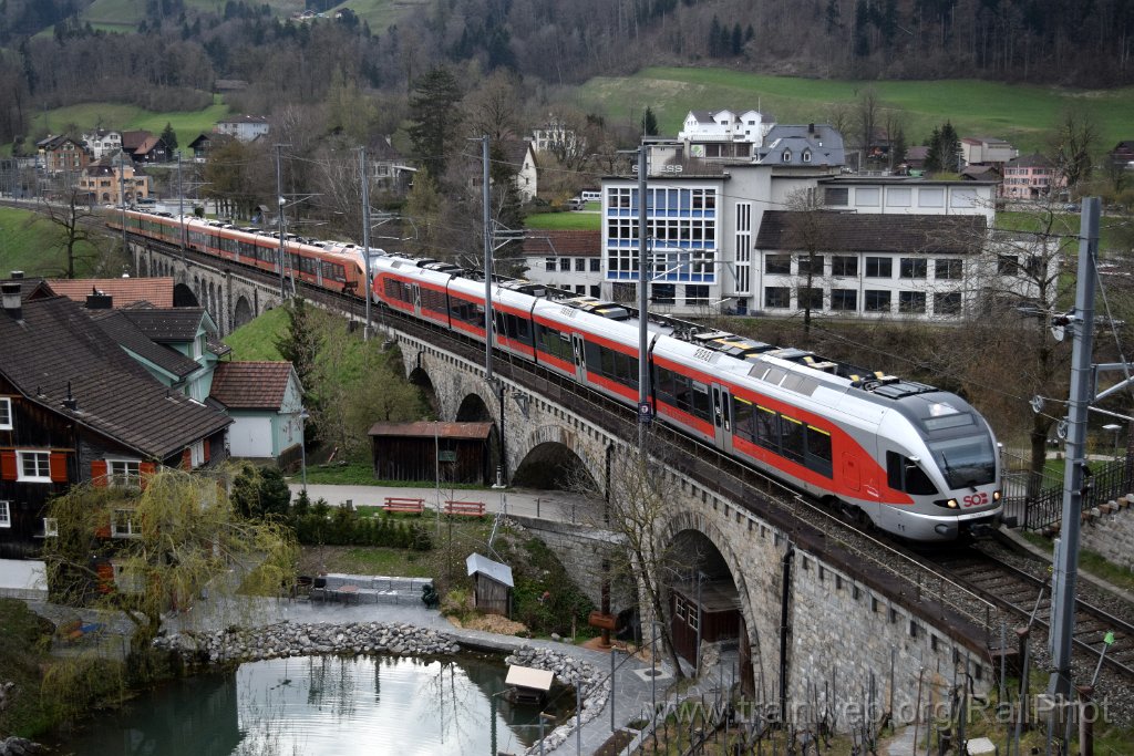 7349-0050-190421.jpg - SOB RABe 526.049-2 "Hochstückli" + RABe 526.215-9 / Lichtensteig (Untertor) 19.4.2021