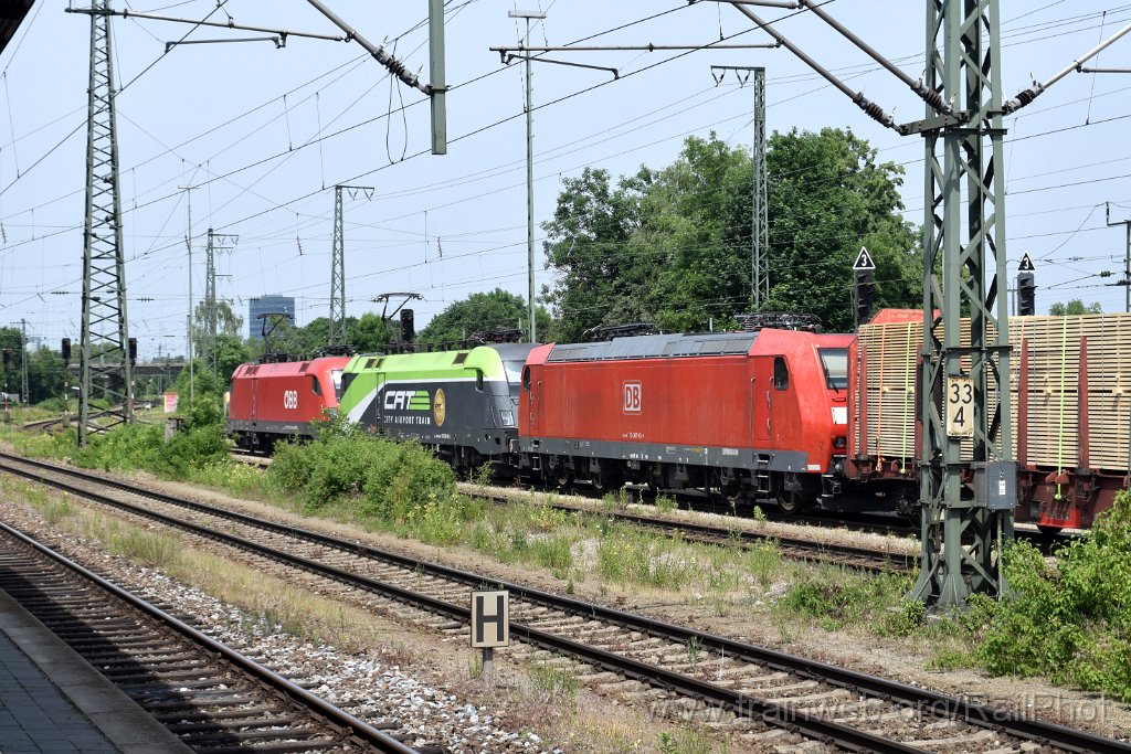 7488-0018-190621.jpg - ÖBB 1116.056 "Mohlibert" + 1016.014 + DBAG 185.051-0 / München-Trudering 19.6.2021